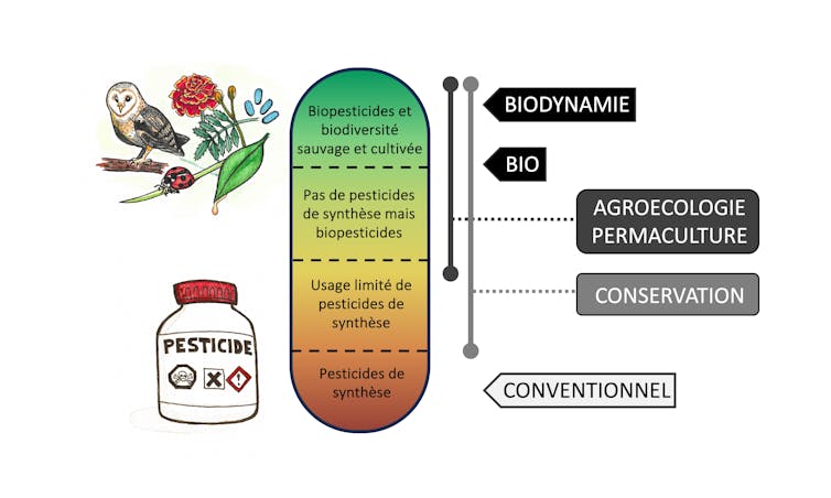 Concrètement, c’est aussi dans les choix réalisés pour se protéger des ravageurs, en limitant le recours aux pesticides, voire en s’en affranchissant totalement, que ces agricultures écologisées diffèrent.
