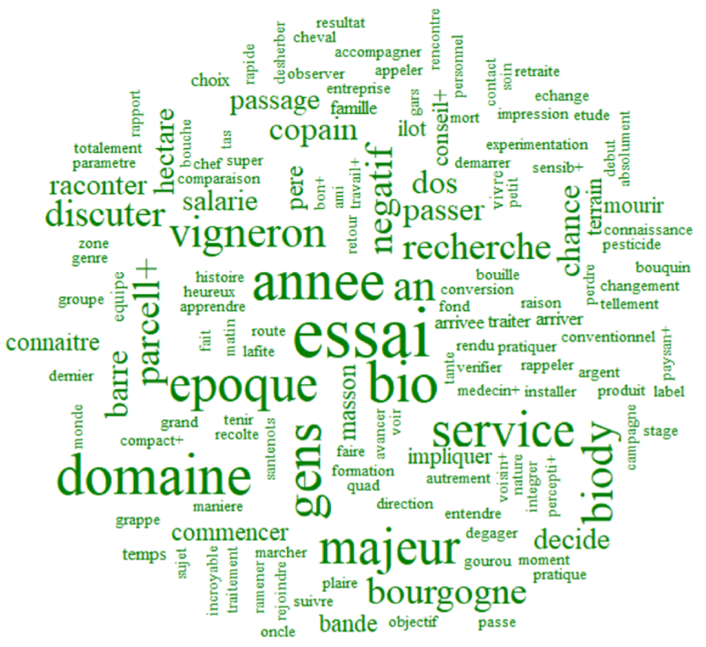 L’analyse de discours menée avec le logiciel Alceste met en évidence quatre représentations distinctes de la biodynamie au sein de la filière viticole française, révélant des degrés variables d’adhésion, de doute et de critique. Toutefois, cette analyse présente des limites importantes, notamment un échantillon restreint de 30 participants majoritairement issus de la région bordelaise, ainsi qu’une approche centrée uniquement sur le contenu sémantique, qui ne rend pas compte de la complexité des dimensions verbales et non verbales du discours.